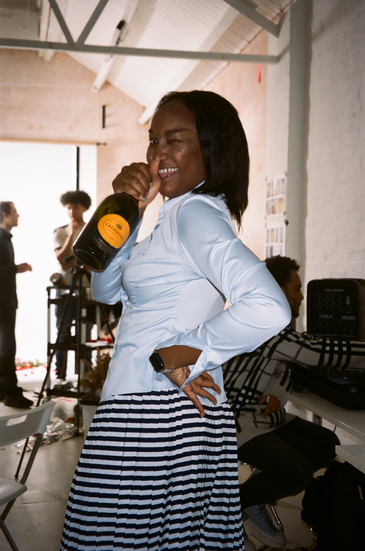 The concept of sharing Hauwa’s journey emerged during the inaugural editorial shoot in London for Roses and Thorns, EveBello's first collection. Hauwa asked me to capture behind-the-scenes and while I knew it would be impressive, the energy in the room surpassed all expectations. There was an infectious sense of love among the thirteen friends she gathered as we witnessed Hauwa’s dedication. Despite only two hours of sleep, Hauwa managed to cook for everyone in the room before the shoot. I could never understand how she operated, but it became clear it wasn't just her work ethic but her caring deeply for those around her.